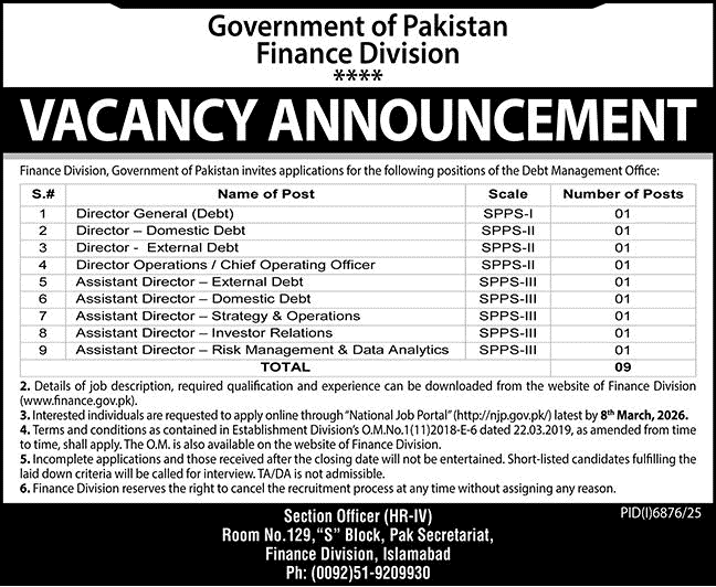 Finance Division Islamabad Jobs 2026 February Apply Online Assistant Directors & Others
